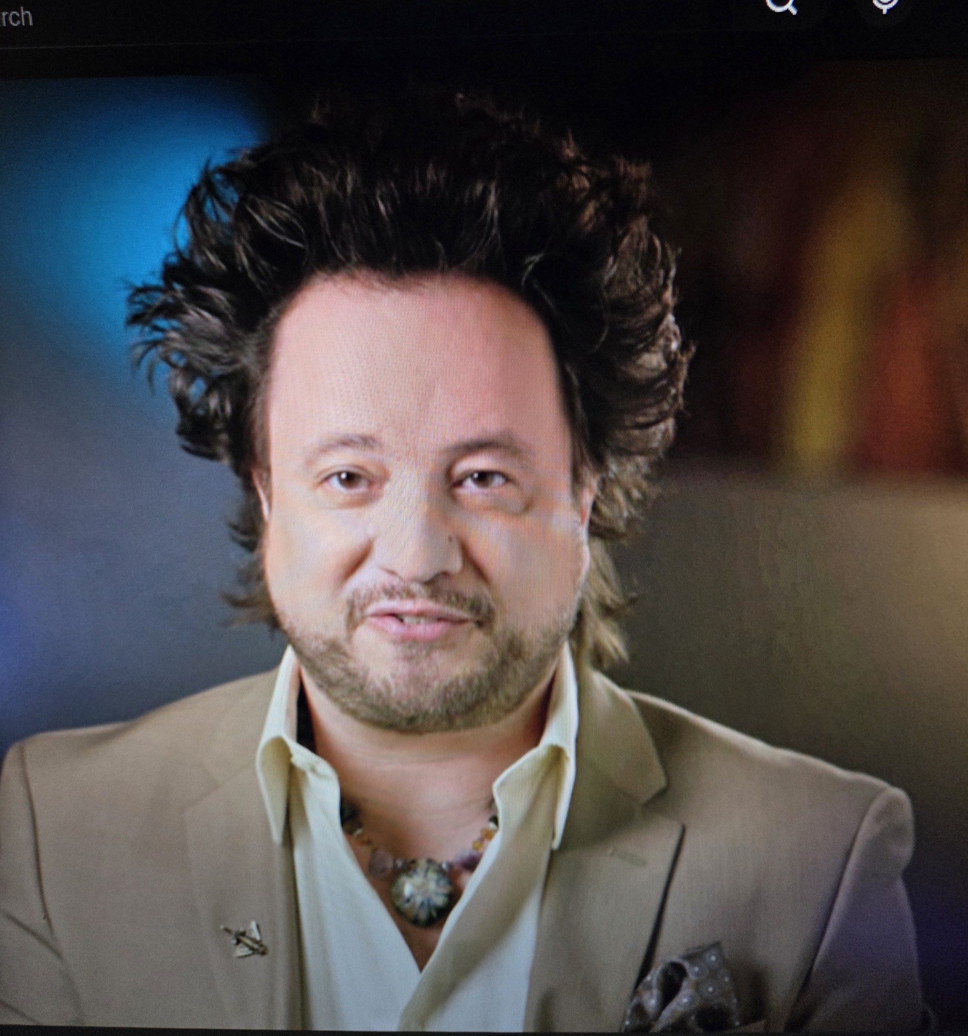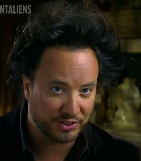 Title:The Evidence Season: 1, episode 1 Who they talk to: Philip Coppens, Giorgio A Tsoukalos, Dr Uwe Apel, Dr Algund Eenboom, Graham Hancock, Robert Bauval, Robert H Frisbee PhD, Michael Cremo, Dr Steven M Greer, David Childress, Jonathan Young PhD, Roger Hopkins What they discuss: A wooden figure found in a tomb in Egypt of what is called the Saqqara bird, and how it’s incredibly aerodynamic. 1500-year-old peoples in Columbia called the Tolima made golden figures of animals, of which a few dozen look eerily like aircraft. They show how they made a model of one of these figures and it actually flew. The Vimanas, what they say are aircraft described in the ancient Indian Sanskrit texts. The Nazca lines and wondering what they were for. Runways, perhaps? The Bible’s book of Ezekiel, and what the object he saw really was. Ancient Egyptian tools, and how they couldn’t have been primitive. They talk to a professional stone sculptor who seems baffled by some of the ancient stonework, saying that, yes, it’s possible, but incredibly hard, and why do something the hardest way possible? He admits that he would have trouble replicating the blocks from Puma Punku, even with his modern machines. Explaining what the manna that sustained the Israelites while in the desert from the Bible was. Maybe it came from a nuclear-driven device that was housed in the Ark of the Covenant. What were the pyramids really for? Maybe some kind of power plant? Notes: I keep feeling that the OG episode should really be higher on my list, but there are so many great ones coming that I really couldn’t place it higher. Giorgio’s hair: