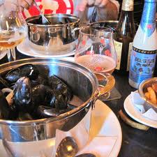 Bières et Compagnie is a nice little restaurant that specialises in draft beers and mussels. At any given time they’ll have about 120 brands of beer on tap, and each one will be served in it’s own logo’d glass. I would really hate being the busboy in a place like this! Imagine having to put all those away, and in the right spot! Ugh! But, since I hate beer, that’s not the appeal of this place for me. Me, I love their all-you-can-eat mussels, sunday to wednesday. ImageThey have a good 40 different flavours of mussels, and I’ve tried a good half of them. Diablo is still one of my favourites, it’s just a little spicy. On non-all-you-can-eat nights, and as the first course on the all-you-can-eat nights, you’re served a bucket of 1kg (2.2lbs). All mussels are served with a basket of (very good) french fries, with special homemade mayos. I don’t like mayo on my fries though (even special mayos like these), so I get ketchup. Following orders on all-you-can-eat nights are served in a large bowl, probably somewhere between 3/4 to 1lb. It’s a bit of a pain if you’re really, really hungry, you can’t get two buckets, and since you can’t order too far in advance, you’ll have to wait awhile between servings, but that’s usually ok for the regular clientèle, they’ll just have more beer. The long island iced tea and bloody ceasers are both very good, so if I’m drinking with my meal, I’ll have one of those. If I don’t, it’ll be water. There’s a good amount of other things on the menu as well, if you’re not into mussels. Burgers range from the normal beef to the special ostrich burger. I keep on meaning to try it, but every time I go, I’m swayed away by the mussels. There’s also a grill where they cook everything from beef steaks (A+ angus beef, of course) to duck and caribou. Everything looks pretty yummy, actually, but I’ve never had anything but the mussels, I don’t think. I love them so much, I always take the same thing. The only thing that changes is the flavour of the juice they’re cooked in, and what I’m drinking. If you love mussels (and/or beer) this is definitely a great place for you to try!