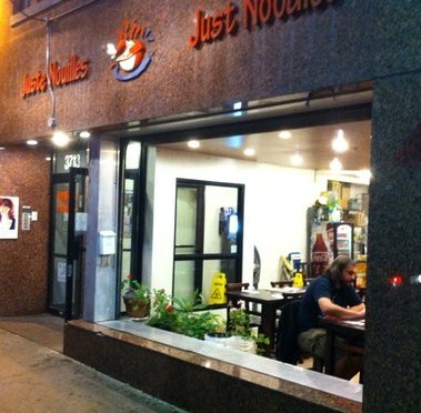 In no universe is Just Noodles the best Asian restaurant in town. It’s what I like to call “fast food Asian style”. But I’ll be damned if it doesn’t make some of the best noodle plates I’ve ever had. Yummy AND huge! It happen(ed) regularly that I wasn’t able to eat the whole thing, and I can eat! ImageThe picture is of the location on St-Laurent, that’s the one I always went to. When I was with my ex, he lived close enough to the one on Masson that we could have it delivered, so we often did that on nights neither of us wanted to cook. The one on St-Laurent was open till 4am (sometimes 5, depending on how many people there were), and was right next to the nightclub I always used to go to, Saphir. Just Noodles saw lots and lots of drunk Mel. I even passed out in the bathroom once or twice (but you don’t need to know that story, just that I was very young and not always responsible :-p ). I barely go there at all any more (Saphir’s not even open anymore, so I have no reason to go to that part of town any more), but every so often I’ll make a special trip, just for those noodles. Om nom nom…