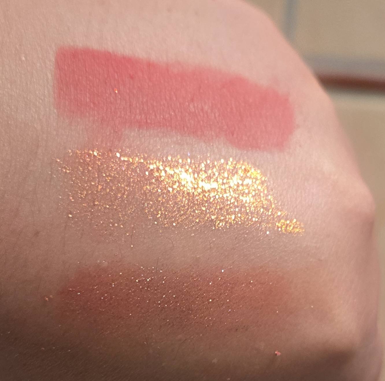 The lippys. Again, so excited. The first two aren’t bad, but the last two are basically just clear gloss with a slight shimmer. I expected that from the yellow one, but not the rest.