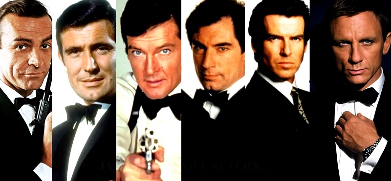 Starring: Sean Connery, George Lazenby, Roger Moore, Timothy Dalton, Pierce Brosnan, Daniel Craig